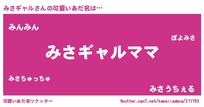 | 意味不明あだ名 | 『永久保存みさギャル』『自称みさギャル』 |