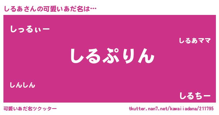 | 意味不明あだ名 | 『なめこ科しるあ属』『永久保存しるあ』 |