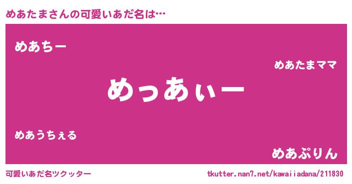 | ヘコむあだ名 | 『めあっちょ』『豆乳』『めあもー』 |