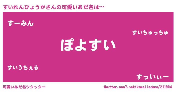 | ヘコむあだ名 | 『すいぷりん』『豆乳』『すいにゅー』 |
