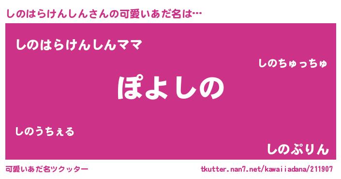 | 意味不明あだ名 | 『住所不定無職しのはらけんしん(5歳)』 |