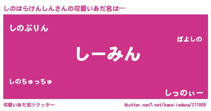 | 女子向けラノベタイトル風あだ名 | 『シンデレラしのはらけんしん家の靴箱館』 |
