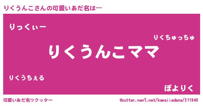 | 女子向けラノベタイトル風あだ名 | 『りくうんこの契約王妃』 |