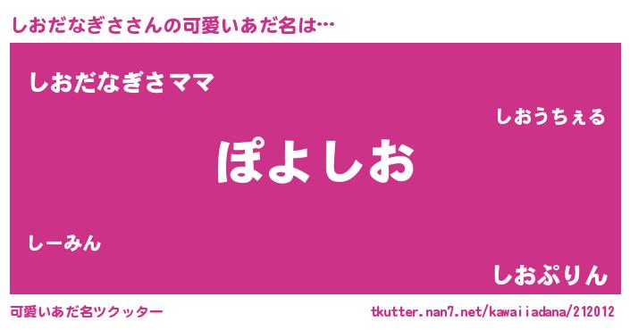 | 意味不明あだ名 | 『住所不定無職しおだなぎさ(98歳)』 |