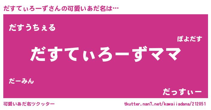| 男性向けラノベタイトル風あだ名 | 『だすてぃろーずという概念が存在しない退屈な世界 』 |
