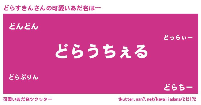 | 意味不明あだ名 | 『自称どらすきん』『ペロリンどらすきん』 |