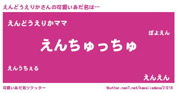 | ヘコむあだ名 | 『えんどうえりか(爆)』『えんもー』 |