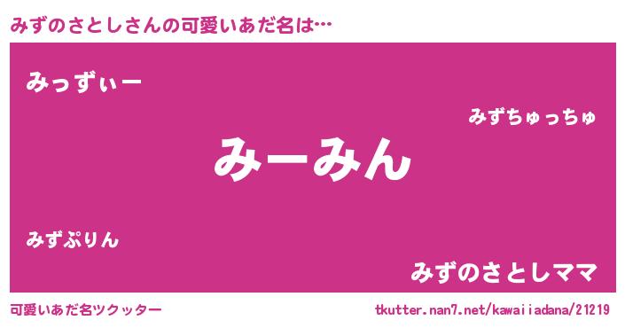 | 女子向けラノベタイトル風あだ名 | 『シンデレラみずのさとし家の靴箱館』 |