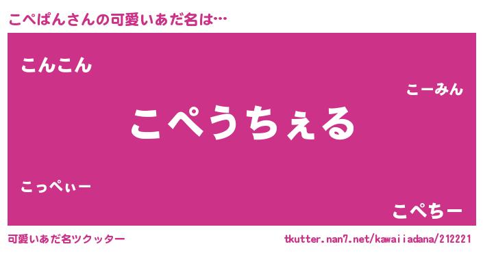 | 意味不明あだ名 | 『自称こぺぱん』『ペロリンこぺぱん』 |