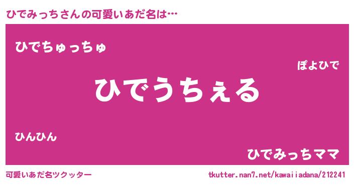 | 男性向けラノベタイトル風あだ名 | 『Re:ひでみっちから始める異世界生活』 |