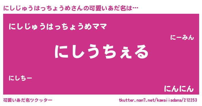 | ヒーロー風カッコイイあだ名 | 『超時空戦士ニシジュウハッチョウメ』 |