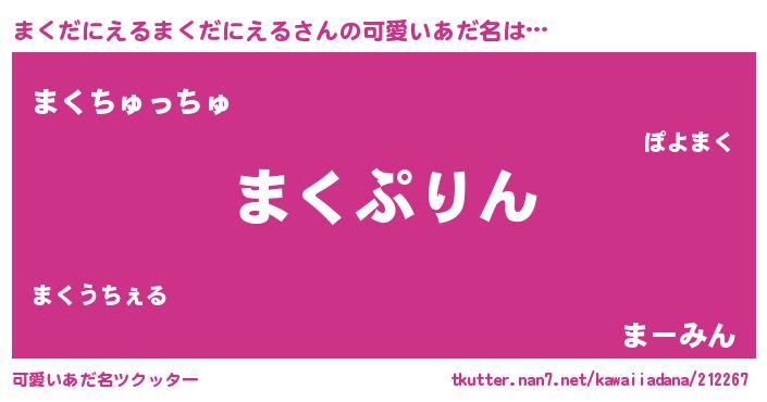 | 料理風あだ名 | 『まくだにえるまくだにえるとほうれんそうの和風グラタン』 |