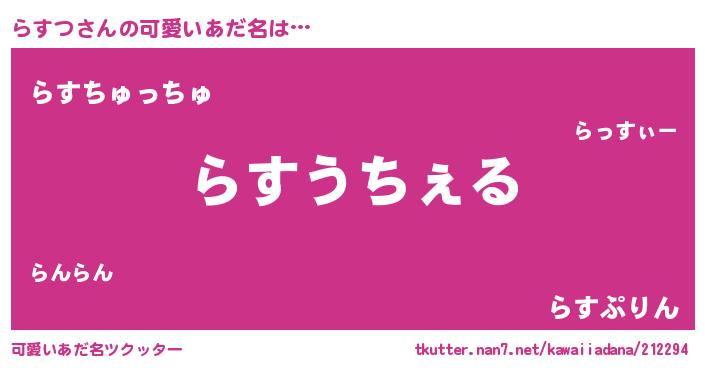 | 意味不明あだ名 | 『自称らすつ』『眠気覚ましガムらすつ味』 |
