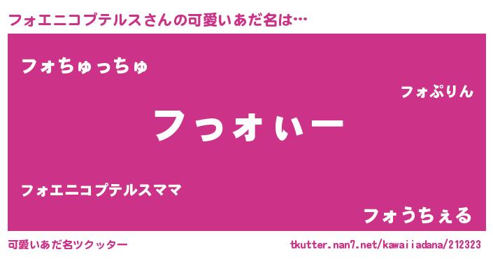 | ヘコむあだ名 | 『フォぷりん』『フォエニコプテルス(笑)』 |