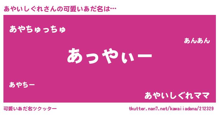 | ヘコむあだ名 | 『あやっ子』『あやいしぐれ(震え声)』 |