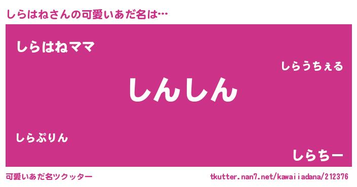 | 意味不明あだ名 | 『ペロリンしらはね』『永久保存しらはね』 |