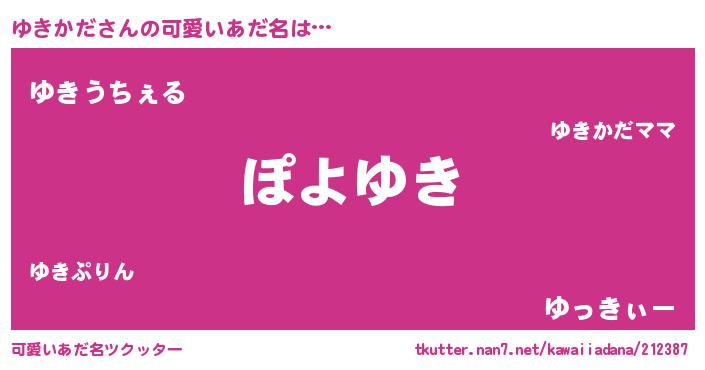 | ヘコむあだ名 | 『ゆき太郎』『ゆきかだ(苦笑)』 |