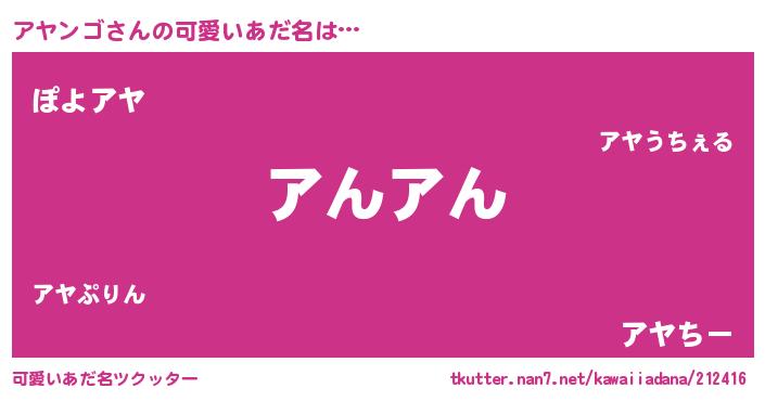 | ヘコむあだ名 | 『アヤっふぃ~』『つくし』『アヤお』 |