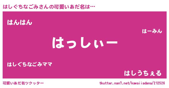 | 男性向けラノベタイトル風あだ名 | 『はしぐちなごみの嫁は女の子じゃないと思った?』 |