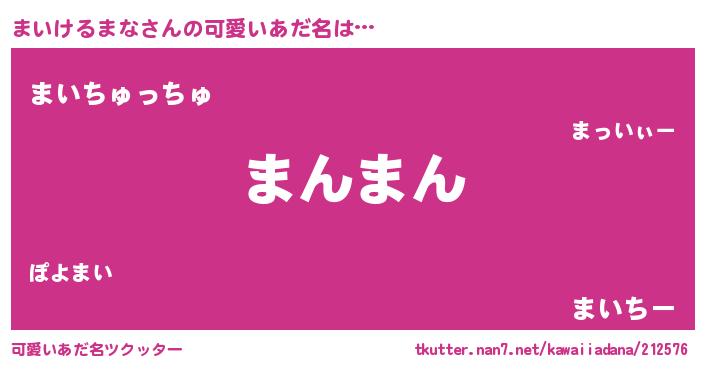 | 恥ずかしいあだ名 | 『プリティーまいけるまな』『まいっちょ』 |
