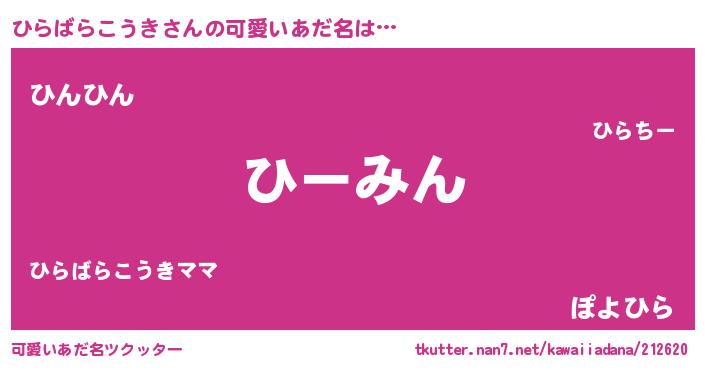 | 恥ずかしいあだ名 | 『プリティーひらばらこうき』『ひらちん』 |