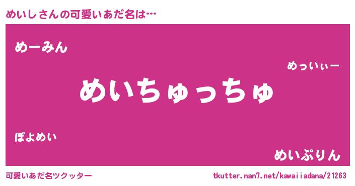 | ヒーロー風カッコイイあだ名 | 『慈愛の使者めいし』『炎刃騎士メイ』 |