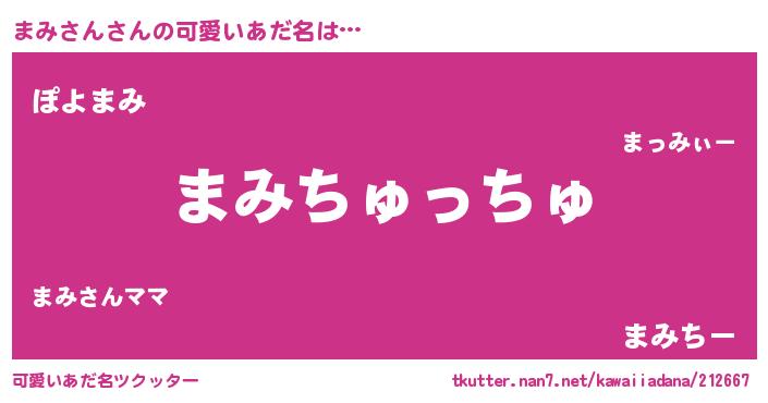 | ヘコむあだ名 | 『つくし』『まみを』『まみっふぃ~』 |