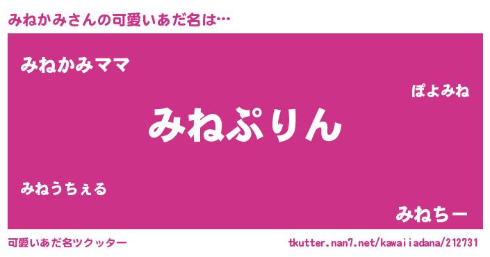 | 女子向けラノベタイトル風あだ名 | 『みねかみの玉の輿計画!』 |