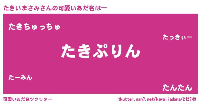 | 男性向けラノベタイトル風あだ名 | 『転生したらたきいまさみだった件』 |