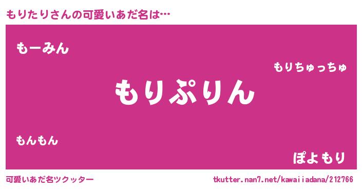 | ヘコむあだ名 | 『もりにゅー』『もりたり(笑)』 |