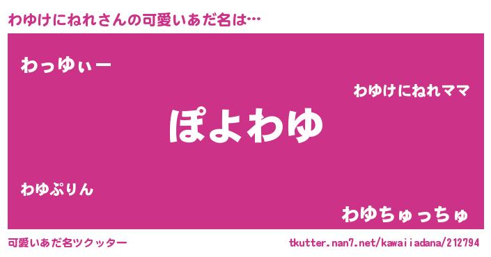 | ヘコむあだ名 | 『わゆっ子』『わゆけにねれ(笑)』 |
