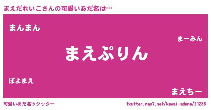 | 恥ずかしいあだ名 | 『プリティーまえだれいこ』『まえっちょ』 |