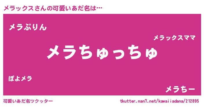 | ヒーロー風カッコイイあだ名 | 『慈愛の使者メラックス』『仮面メラダー』 |