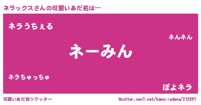 | 男性向けラノベタイトル風あだ名 | 『冴えないネラックスの育てかた』 |