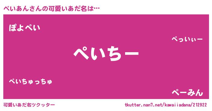 | 意味不明あだ名 | 『ぺいあんフォーエバー』『自称ぺいあん』 |