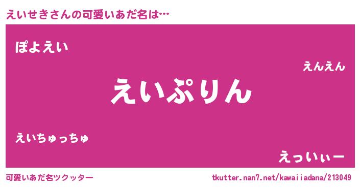 | 男性向けラノベタイトル風あだ名 | 『えいせき~年齢イコール彼女いない歴の魔法使い~』 |