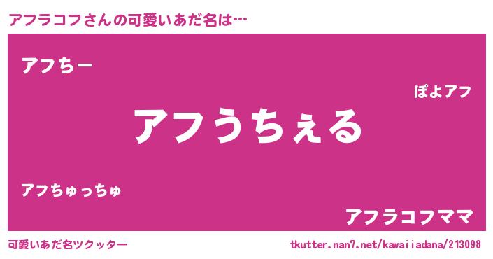 | 意味不明あだ名 | 『自称アフラコフ』『永久保存アフラコフ』 |