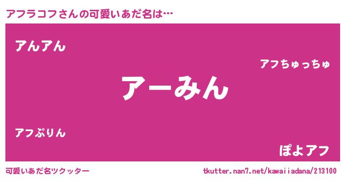 | 男性向けラノベタイトル風あだ名 | 『緋弾のアフラコフ』『アフラコフの憂鬱』 |