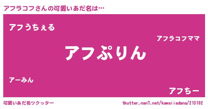 | 恥ずかしいあだ名 | 『アフラコフデラックス』『アフっちょ』 |