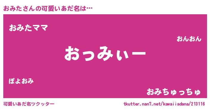 | 男性向けラノベタイトル風あだ名 | 『おみたの嫁は女の子じゃないと思った?』 |
