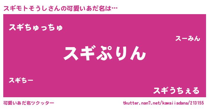 | ヘコむあだ名 | 『豆乳』『スギっちょ』『スギにゅー』 |