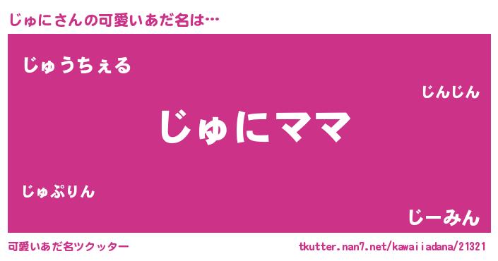 | 意味不明あだ名 | 『永久保存じゅに』『自称じゅに』 |
