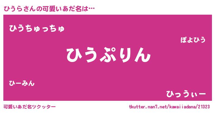 | ヘコむあだ名 | 『ひうぷりん』『ひうら(爆)』 |