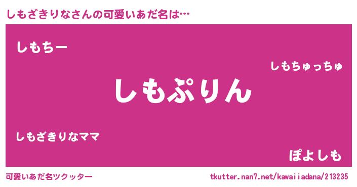 | 意味不明あだ名 | 『もやし科しもざきりな属』 |