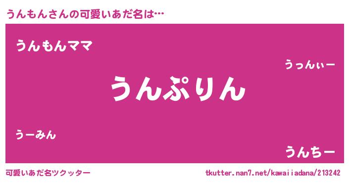 | ヒーロー風カッコイイあだ名 | 『ネオウンモン』『ウルトラうんもんマン』 |