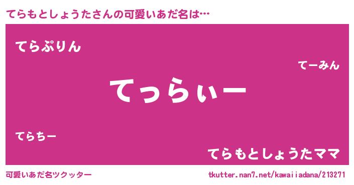 | 男性向けラノベタイトル風あだ名 | 『てらもとしょうたの嫁は女の子じゃないと思った?』 |