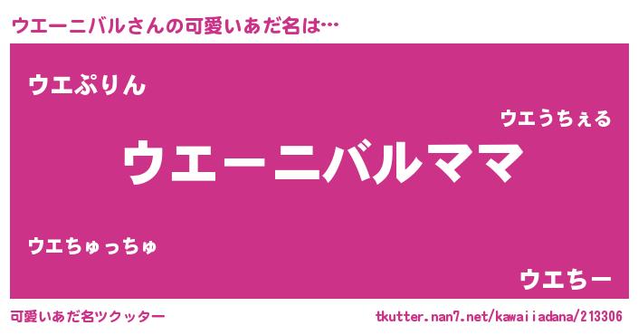 | 男性向けラノベタイトル風あだ名 | 『ウエーニバルという概念が存在しない退屈な世界 』 |