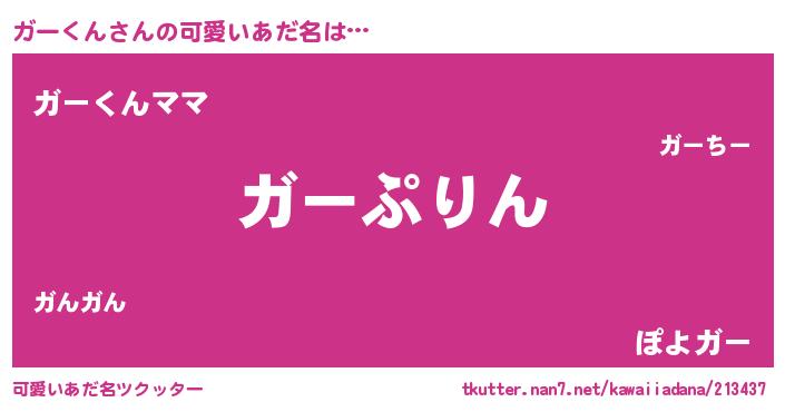 | 男性向けラノベタイトル風あだ名 | 『転生したらガーくんだった件』 |