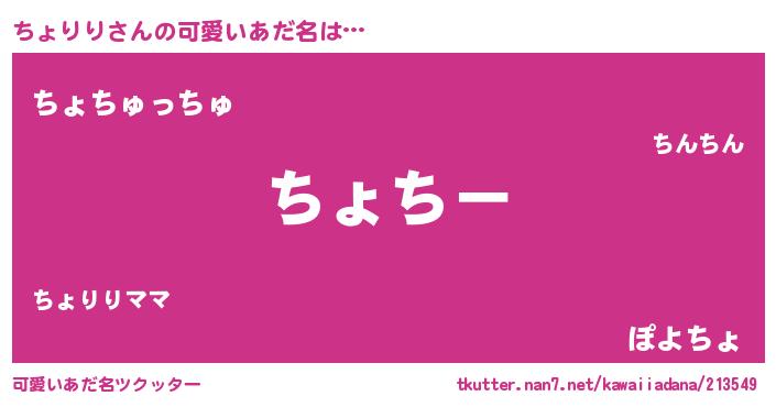 | 男性向けラノベタイトル風あだ名 | 『ちょりりに滅ぼされるだけの簡単なお仕事です』 |