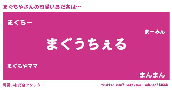 | 女子向けラノベタイトル風あだ名 | 『まぐちやなんてお断りですっ。』 |